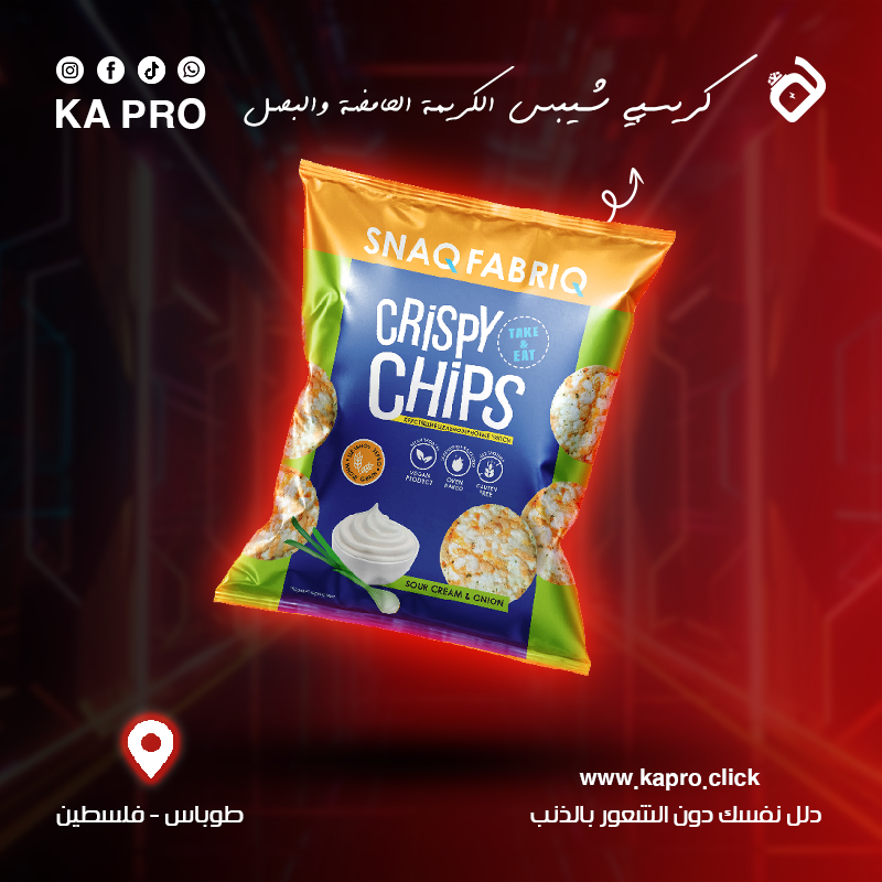 شيبس كريسبي بنكهة الكريما الحامضة و البصل 6% بروتين بدون صويا و غلوتين