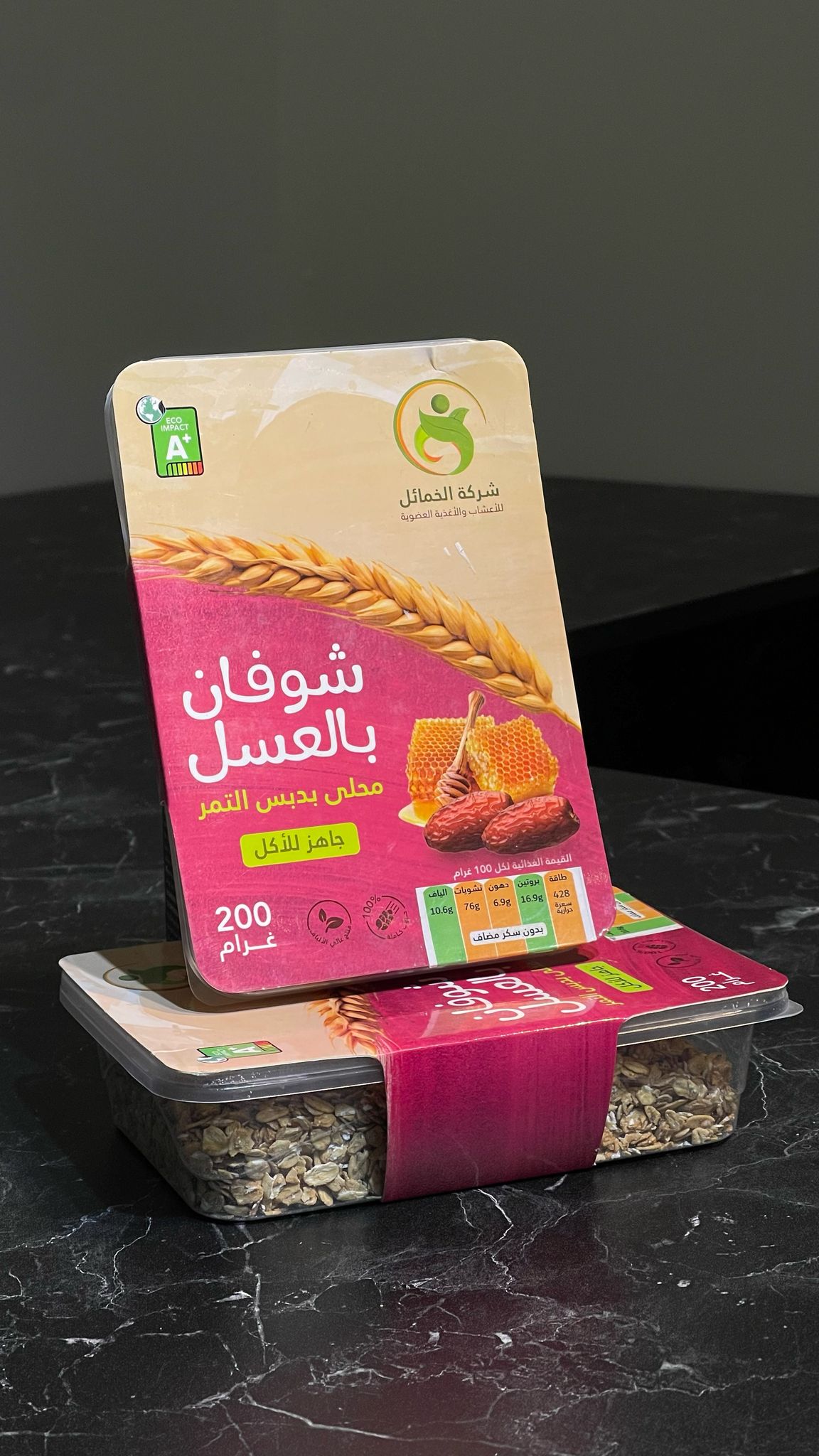✨ استمتع بالفوائد الصحية والطبيعية مع شوفان بالعسل محلى بدبس التمر من شركة الخمائل! ✨