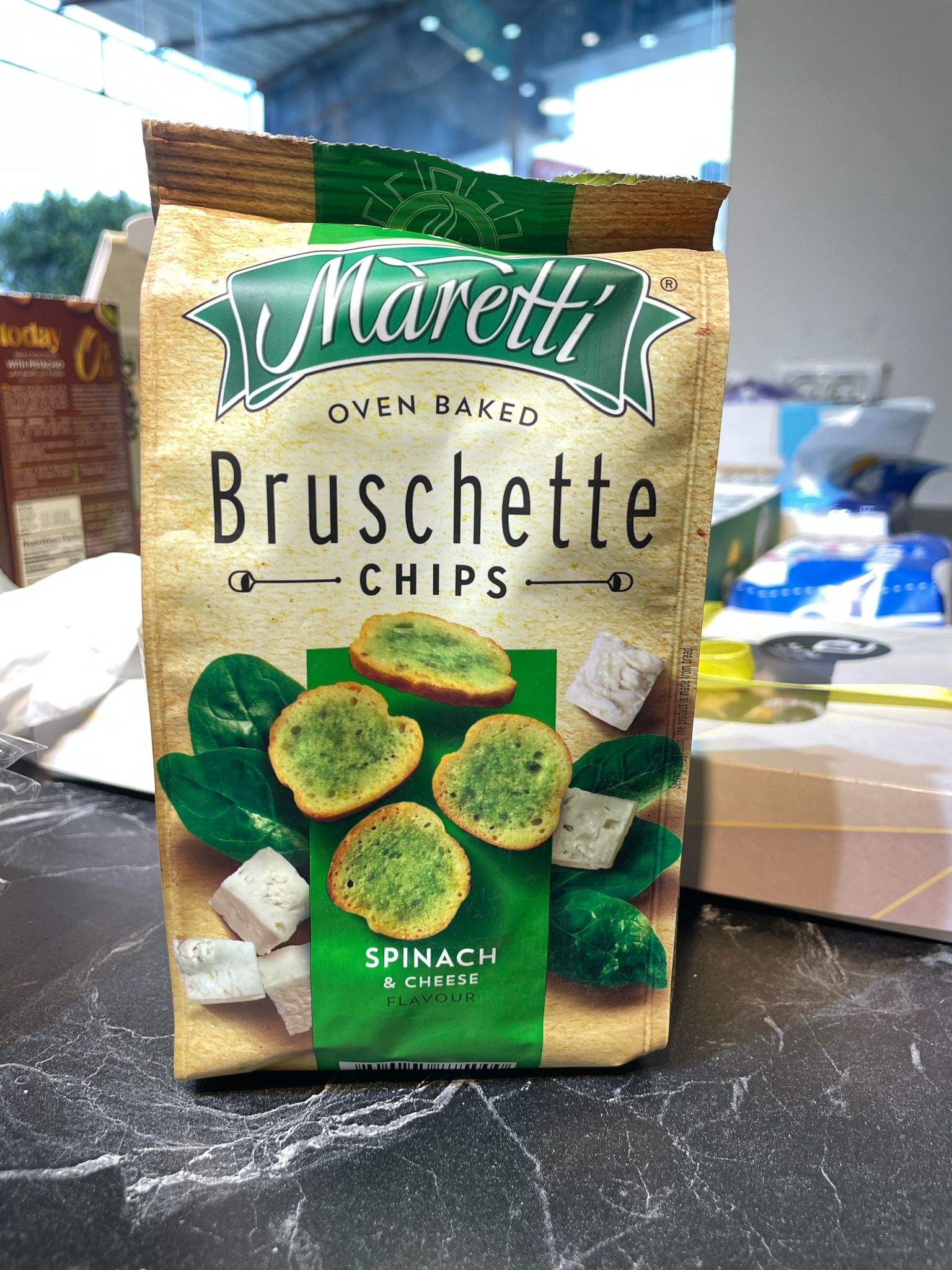 استمتعوا بمذاق إيطاليا مع رقائق البروشيتا المخبوزة في الفرن من Maretti بنكهة السبانخ والجبنة!