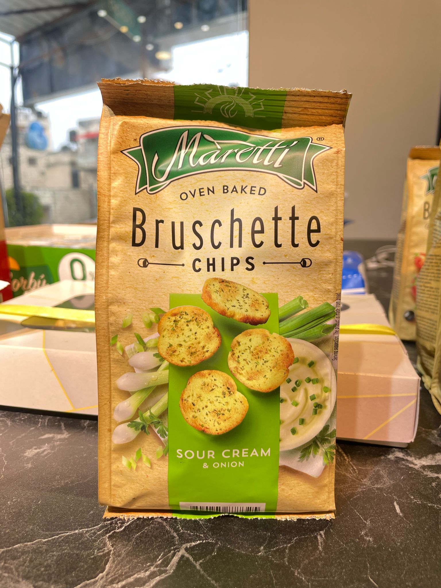 🥖 رقائق بروشيتا مخبوزة في الفرن من Maretti - نكهة الكريمة الحامضة والبصل 🥖