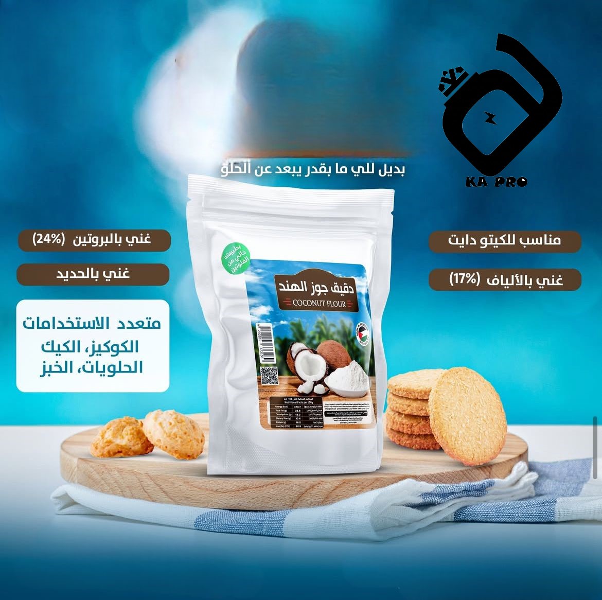 🌴 المكونات: دقيق جوز الهند الطبيعي 100%، غني بالفوائد الصحية.