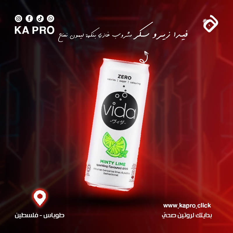 مشروب فيدا الغازي بنكهة الليمون و النعنع بدون سعرات حرارية بدون سكر