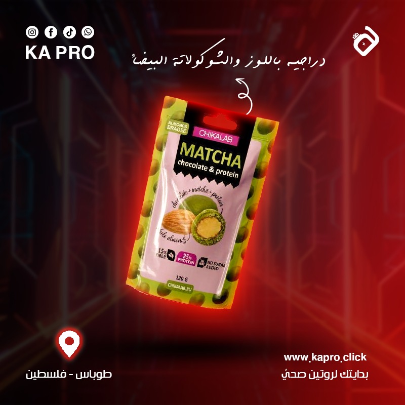 اللوز بالشوكلاتة البيضاء مع شاي الماتشا مع محلي ( السكر الوز )